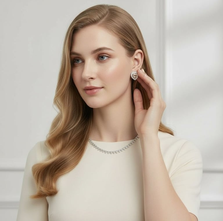 Peças que combinam elegância atemporal com um brilho marcante, trazendo presença sem esforço e aquela energia poderosa que faz qualquer ambiente notar quando ela chega.